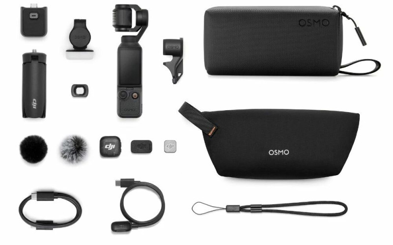 Contenu du pack: Osmo Pocket 4, Câble de charge magnétique pour émetteur Dji Mic 3, Sac de transport pour Osmo Pocket 4, Mini trépied pour Osmo, Lumière d'appint Osmo Pocket 4, Aimant Dji Mic 3, Objectif Grand-angle pour Osmo Pocket , Emetteur Dji Mic 3, Bonnette anti-vent Dji Mic 3 (Noir), Bonne anti-vent Dji Mic 3 (Noir/gris), Câble PD USB-C vers USB-C (USB 3.1), Pince de nacelle Osmo Pocket 4, Dragonne Dji, Poignée Osmo Pocjet 4 avec filetage 1/4'', Pochette de transport portable Osmo Pocket 4